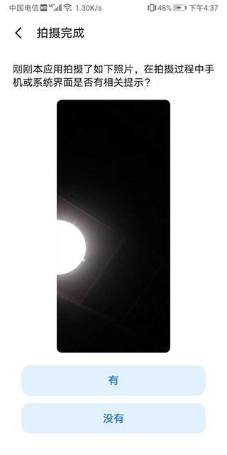 3、结束后显示已经在后台完成了拍照,整个过程软件界面都没显示在拍照,还好手机状态栏有显示;