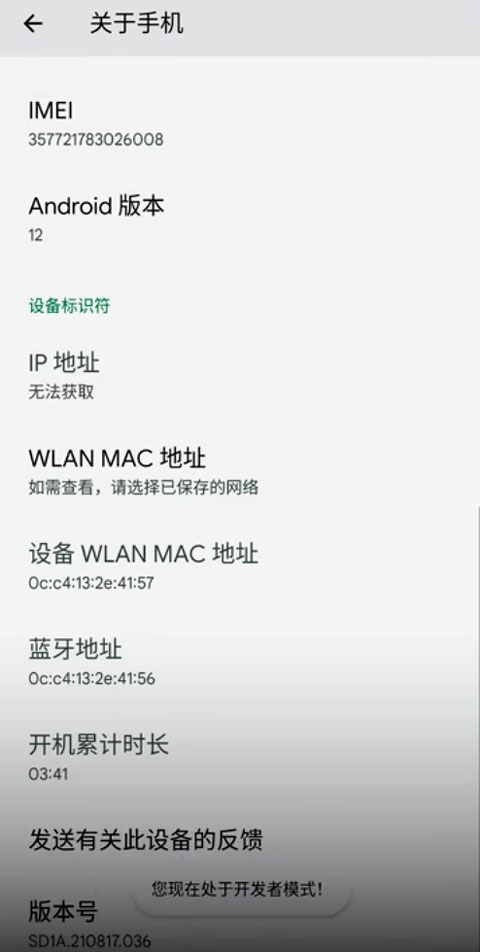 3、其中“打开开发者选项”在设置中找到“关于手机”,连点7次“版本号”即可开启开发者选项。