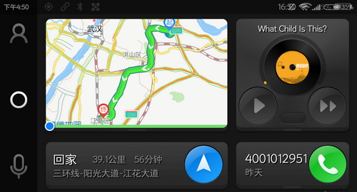 4、首页聚合四大驾驶核心功能,一页掌控导航、路况、音乐、电话和语音,让驾驶更简单;