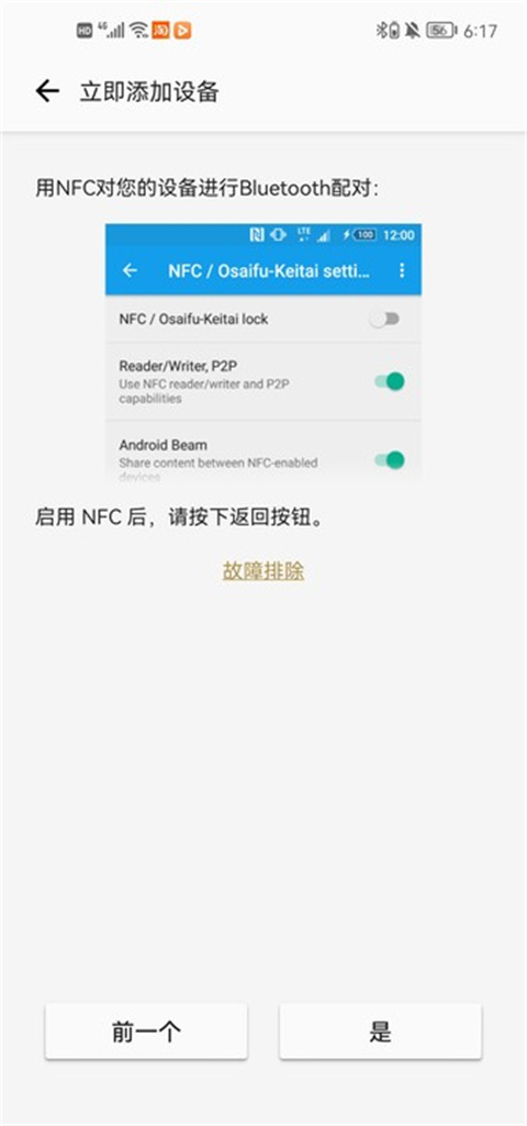 解锁智能手机屏幕,打开NFC功能,然后通过一触连接(NFC)在扬声器和智能手机之间建立BLUETOOTH连接。