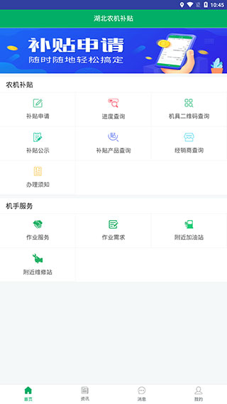 1、补贴申请:通过湖北农机购置补贴app就能快速的申请农机补贴了。