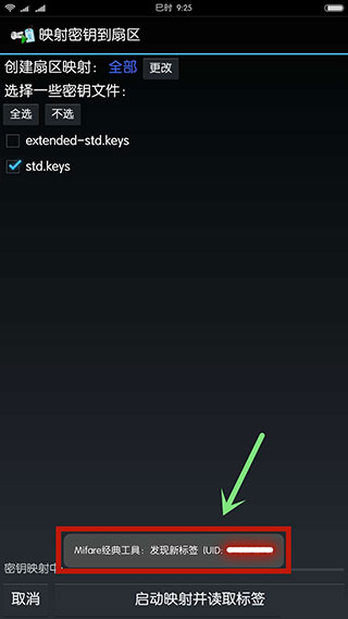 2、选择启动映射并读取标签,这时软件会读取卡片上的信息;