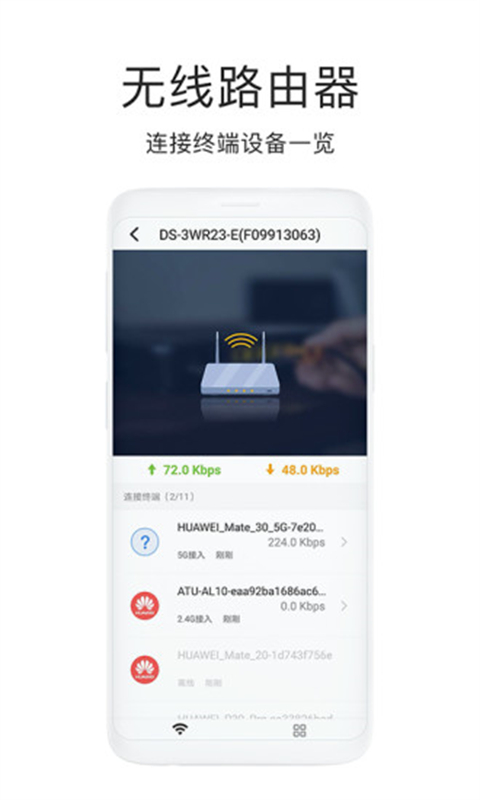 路由器可以说是每家每户最常见的物品存在,那小编在这里就为大家带来一款由杭州海康威视数字技术股份有限公司针对海康wiifi路由器器而推出的管理软件——海康wiifi app。这款路由器管理软件不仅支持多种型号的路由器,而且还为用户们带来了网络测速、黑白名单管理、限速等多种功能,另外该软件还可以够显示当前链接设备详细显示并进行一键重启wifi等其他功能,可以说操作简单且方便实用。此外,海康wiifi路由器app官方版还会实时更新网络状态来让用户们的下载、上传速度一目了然。同时它还支持WPA2-PSK专业无线加密机制让网络安全有保障,并且还能够显示接入的所有手机、平板、电脑等设备并进行一键禁用蹭网操作。不仅如此,海康wiifi app更是可以智能识别宽带上网方式以及对不同的设备进行网络分配让你的网络使用更加流畅,有需要该软件的用户们欢迎前来本站免费下载使用~