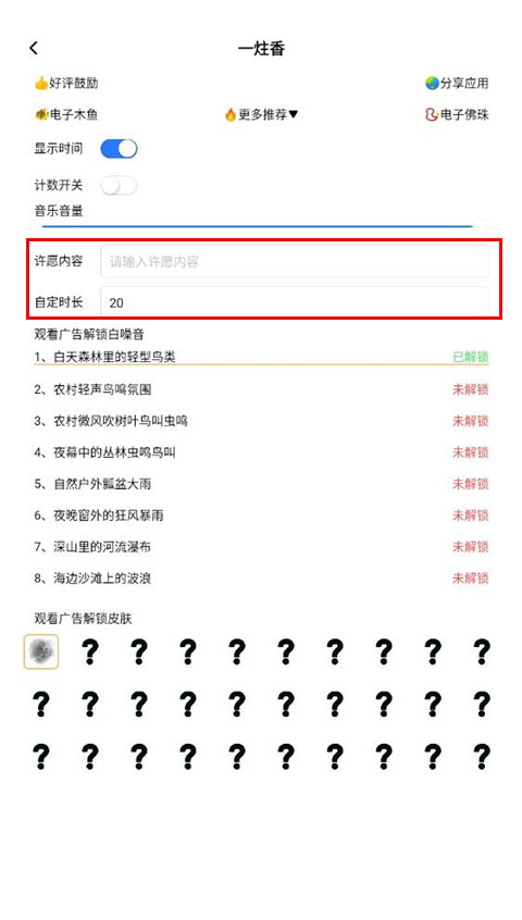 2、烧香过程中可选择不同的白噪音背景音乐