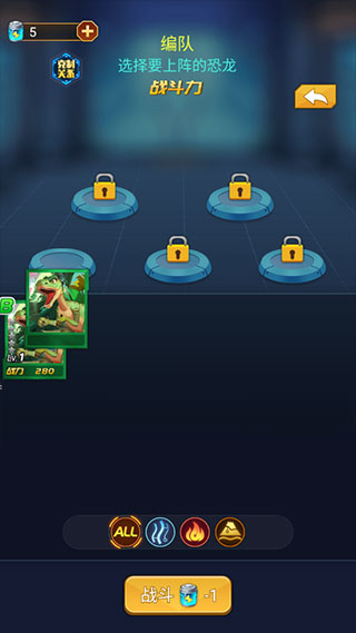 5、点击“开始战斗”,将你获得的恐龙拖拽上阵,然后点击消耗能量值参与“战斗”。