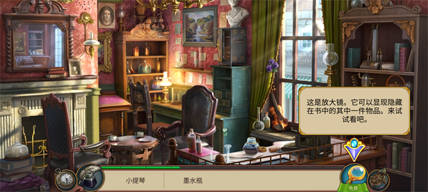 5、玩家需要在游戏中找到各种指定物品,这样才能成功过关,当遇到瓶颈时,还可以点击右下角的各种道具助你一臂之力。