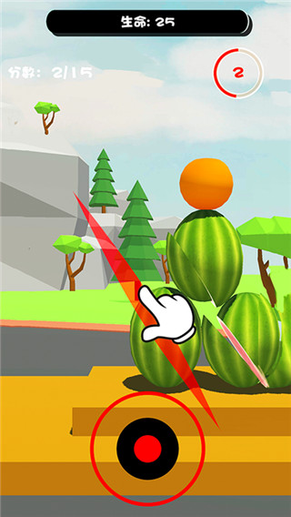 3、但需要注意不要切到橙子,橙子相当于炸弹