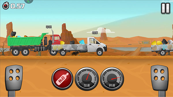 狂奔的卡车是一款非常好玩的赛车竞速游戏,在整体界面上采用了独特的卡通画风设计,游戏以卡车为载体,玩家需要控制卡车在道路上和世界各地的玩家们一起参与线上竞赛。关于狂奔的卡车游戏的操作方式也极其简单,玩家按住右下角的按钮来进行前进,同时还可以使用燃料对卡车加速,当遇到障碍物或是要翻车时可以进行适当的减速,完美的控制卡车速度赢得比赛。此外玩家还可以通过关卡来获得金币,不仅可以对卡车相应的部件升级,还可以给卡车换不同种类的颜色。另外全新的狂奔的卡车游戏中增加了绚丽的2D画面,还拥有多种游戏场景、大量关卡、自定义卡车和车辆,玩家们可以操控不同卡车穿梭在森林、沙漠与采石场,展现你高超的驾驶技术来帮助你完成游戏中的各种挑战,还在等什么,喜欢的朋友快来下载体验吧!
