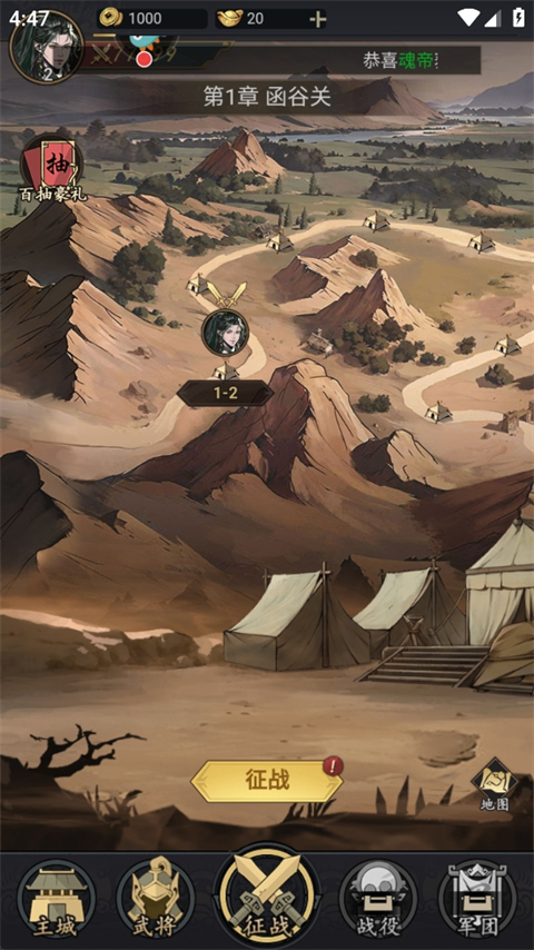 2、点击屏幕中间的征战,就可以与敌人展开酣畅淋漓的战斗。