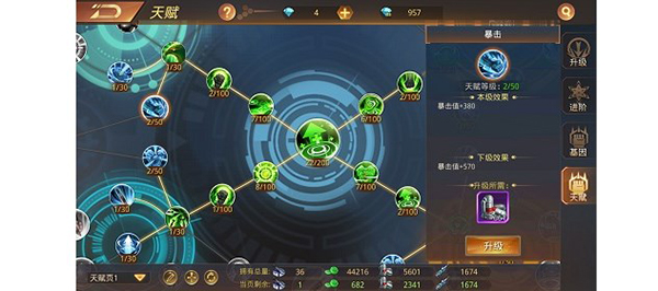 2、天赋一共有绿色、蓝色、紫色三种。肾上腺素、细胞激素、神经激素分别可以升级绿色、蓝色、紫色天赋。