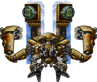 乘物的机炮威力1.5倍,且中弹时的损伤减半,炮弹补给量2倍,此外以往家用版本才能使用的 "乘物定向连射" 自街机MS6起成为他的专利(任何乘物都可,唯一例外是自MS7新增的机器人乘物)。可按↑AD去踢机械乘物,效果为修复1/3最大HP、伤害1/3最大HP、直接满血、直接踢爆(概率极低)或无效果,五者随机取一。