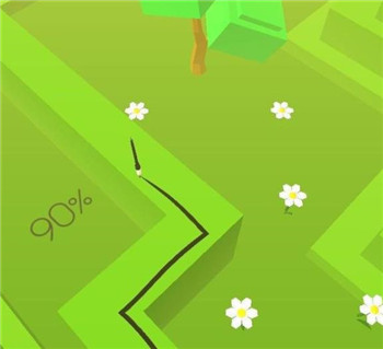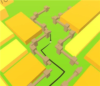 1、游戏没有什么剧情交代,开始之后我们要做的就是循着节奏点击。可以看到在场景中有一个类似小线的东东不断前行,玩家要做的就是在拐角处点击屏幕任何位置来让小线转向,至于转向是否正确就无需玩家操心了,你只需要保证小线不撞墙就好。