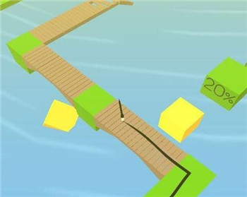 第一个坑来气,继续往前走就会出现两条路,一个是断桥,一个是正确的路,额应该没有人往断桥上转吧(好吧,我承认第一次玩的时候,我就转了),有了前车之鉴,就不要转了。断桥会先出现,正确的直路是后出现的,直接无视断桥让线自己走就好了。度过前面的一个小插曲后,真正的大坑就来了,前面只是给你开的一个小玩笑而已。可以看到桥的尽头是树杈,这是田野的第一大难关,这个音乐的突然加快很考验玩家们对音乐的掌握程度,这就是我为什么要大家提前听一遍音乐,就是这时候要突然派上用场的。节奏(快点5下),如果有人试了之后还总过不去,那我只能告诉你,不要过早点也不要过晚点,多试几次总会过去的,加油哈!
