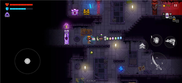 1、霓虹深渊无限手游国际服是一款注重道具叠加效果的横版动作地牢游戏,你还可以根据喜好自由选择地牢的进化路线。身为神秘组织的一员,你将在霓虹闪耀的地下世界中探险,收集千奇百怪的道具,击败恶魔与众神,寻找地牢最深处的宝藏。