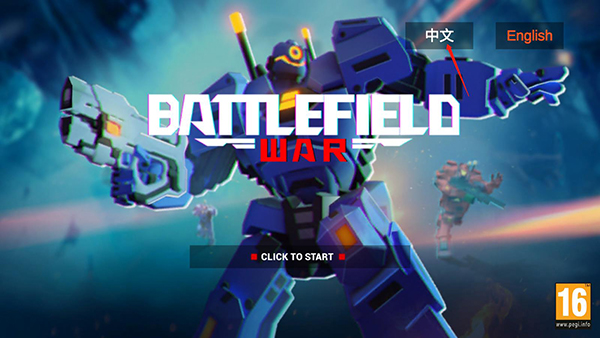 1、首先进入机器人枪战游戏,游戏默认为英文,可在右上角选择中文切换语言;