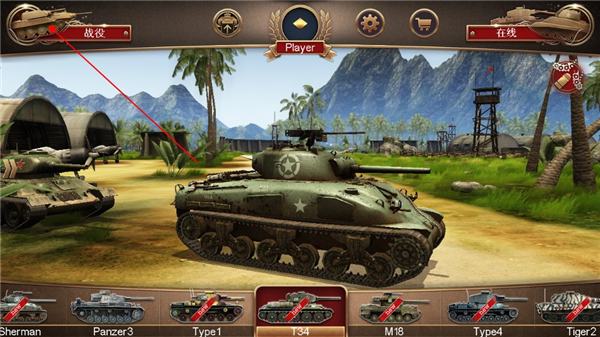 1、在本站下载安装并打开游戏,进入游戏页面,下方为玩家准备了很多不停类型的坦克,玩家可以自由选择。