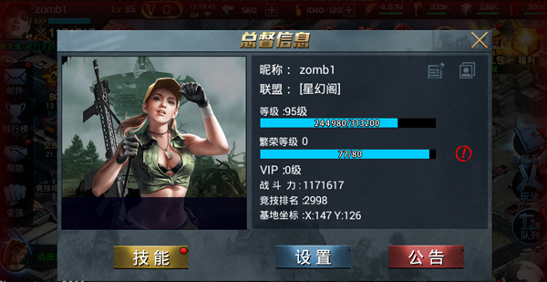 游戏中,你需要面对来自丧尸和幸存者的双重威胁,通过策略和合作来生存下去。培养英雄、研究科技、组建联盟是提升实力的关键。游戏的战斗系统紧张刺激,既有单人作战也有组队闯关,满足不同玩家的需求。