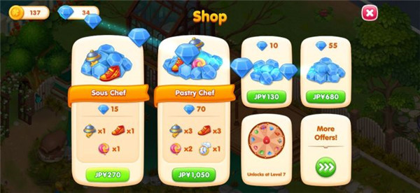 4、如果大家想要购买各种资源来提升餐厅等级,可以通过商城,直接购买各种礼包获得。
