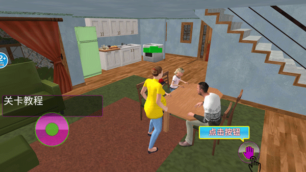 1、游戏中你扮演的是一名家庭主妇,你需要通过左下角的摇杆移动到指定位置。
