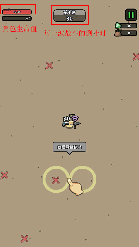 滑动屏幕下方即可控制角色移动,自动射击打怪;