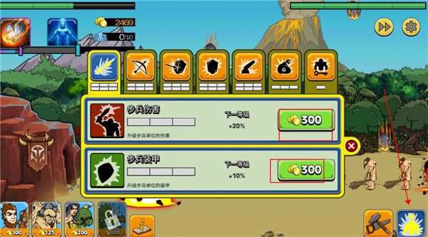 5、除此之外,点击右下角此处,还可以花费金币,升级士兵们的各项属性,以便能够更高的击溃敌方