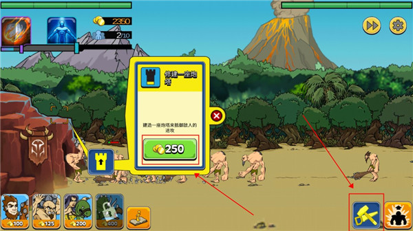 4、除了召唤士兵守卫基地外,我们还可以点击右下角的建造,为基地建造防御用的爬塔等防御设施