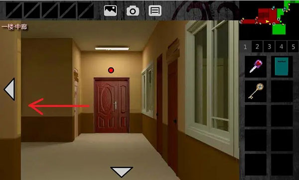 2、后退,用【红桃钥匙】解开前方的门,进入2F•东侧廊。下楼,进入1F•东侧廊。右转,用【红桃钥匙】解开右侧金牛座的门,进入1F•医务室。右转,出门,进入1F•中廊。点击右上角小地图,可以查看大地图。