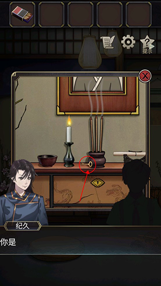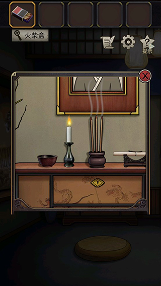 1、在游戏一开始跟着提示点击台子,在台子上面可以找到火柴,是用火柴点燃蜡烛。