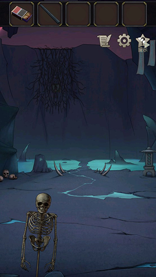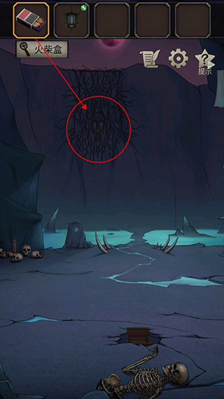 8、来到这个阴间场景之后,点击后面的骷髅堆。在骷髅堆上面可以拿到一个铁棍。