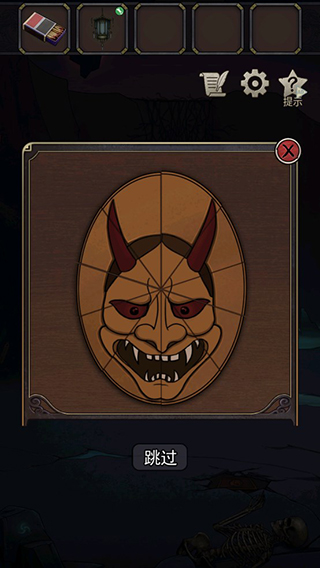 12、使用前面在骷髅堆拿到的尖头棍达开骷髅面前的裂缝,就可以得到面具,这个面具要进行一个小游戏,如图拼凑面具。