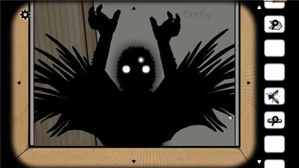 12、点击天花板,出现一个黑影在它抓住你之前点击苍蝇再点击黑影,连续三次后黑影消失出现黑色方块,点击黑色方块,游戏结束。