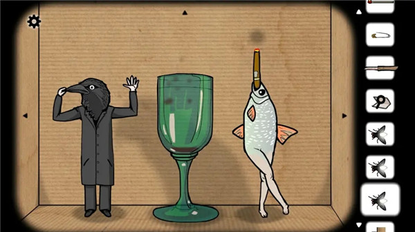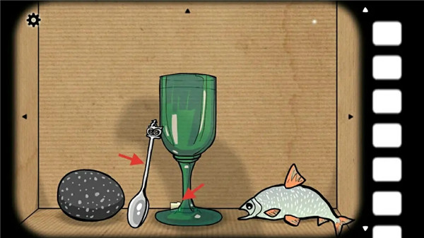 10、按提示摆好乌鸦和鱼的姿势激活酒杯:1)酒杯里的酒升到最高,点击勺子敲击杯沿一下;