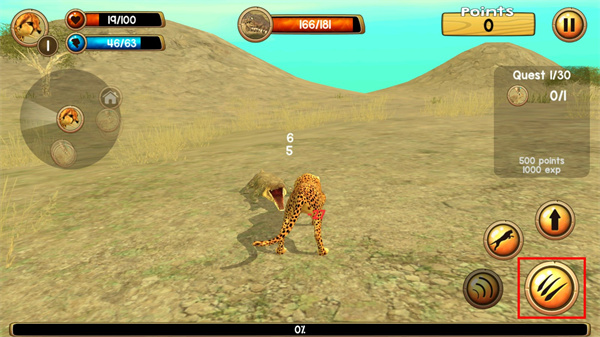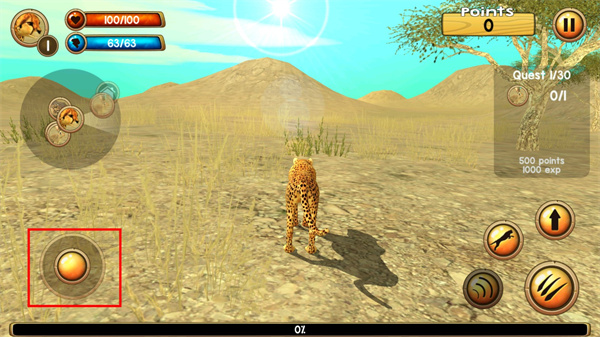 1、下载进入猎豹模拟器游戏,首先通过滑动左下方的方向键来控制猎豹进行移动;