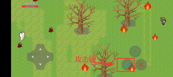 左边是虚拟手柄,控制着角色的移动;