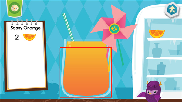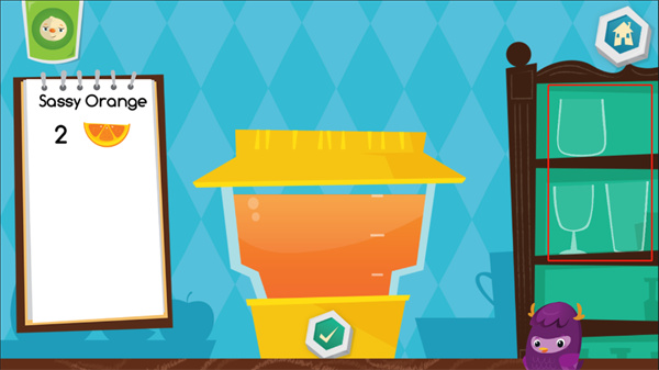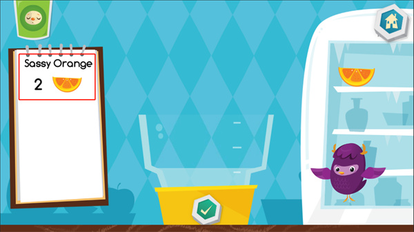 5、左边会改孩子任务,孩子需要根据任务将水果放入榨汁机中;