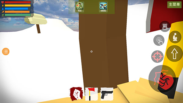 1、玩家可以利用地图中的木头、土、水,来建造一个生活基地。