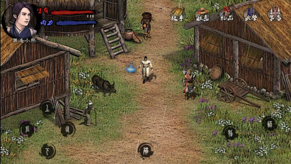 村长家有个叫琪琪的NPC可以签到和领福利(需联网),如果不刷生活经验,他会让你去平安镇,出村,遇到山贼做恶,因为前期没有技能,选择救,被打半死,山贼让你给五千银两,老大会出现解决,选择不救,老大也会出现解决。
