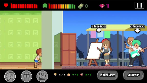 《Life is a game》属于休闲游戏,操作非常简单,一共只有Jump和Chioce两个键,对手速的要求也不大,更多的不如说考验取舍,氪金么,这个游戏是外国游戏,想氪也氪不了,不过小编还是建议下载我们的修改版,毕竟有时候商店还是需要。