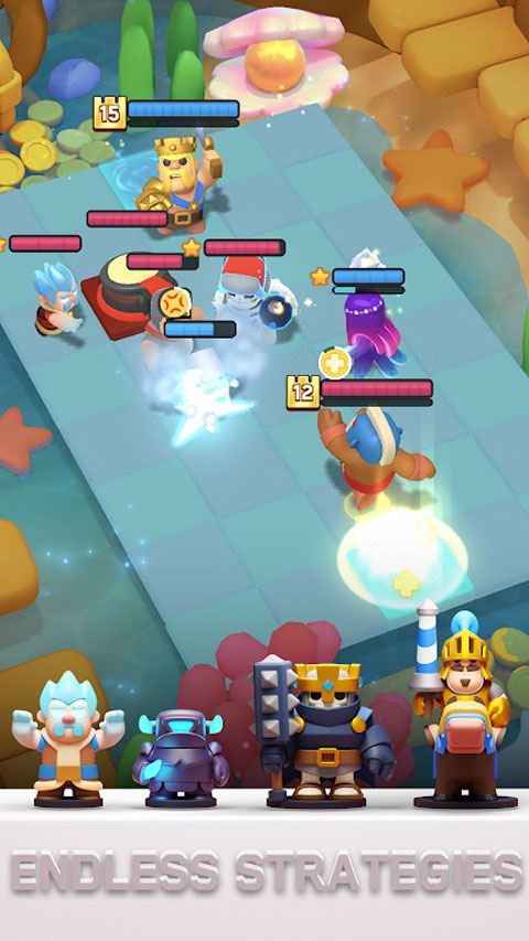 3、极具特色的战争策略玩法让你成为竞技场中的顶级高手,用智慧赢得最终胜利。