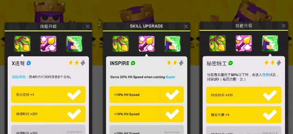 玩这个游戏主要就是“养卡”和对战,你需要根据对手的策略来调整自己的阵容和位置。每个棋子都有独特的技能,比如野蛮人之王能加Buff,弓箭女皇会隐身连射,盾妹则是个超级肉盾。这些英雄还能通过升级解锁更多强力技能。
