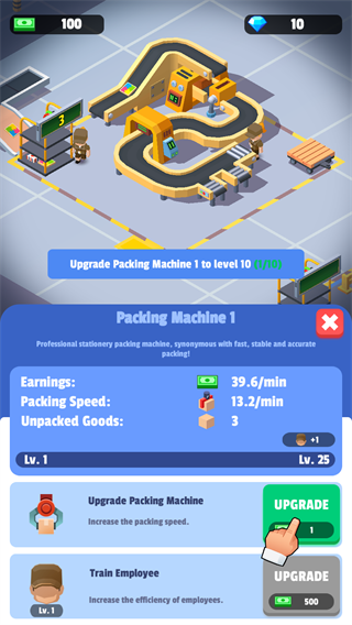 1、您可以升级各种技能,购买更多专业的机器进行分类。