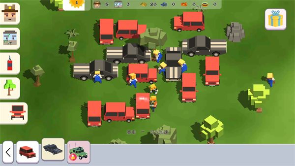 3、选择好车辆后下方会有一小行字显示当前车辆的属性,比如小编选择的赛车具有加速的功能,点击图中任意位置即可将车布局在地图中啦!