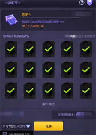 主要用途:缺乏助理艺人时充当助理,在“合同兑换”中兑换成助力卡。