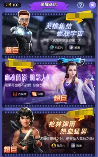 目前版本超巨只有3个,分别是战争片、古装片、科幻片类型,每一个都能大幅度增加所拍摄电影的质量和票房,可谓是核心中的扛把子,只能通过“黑金荣耀卡”进行兑换,兑换成本极高,解锁完超巨资格后还需要再花黑金荣耀卡才能换到超巨本体,本体升星需要消耗巨星艺人手册,技能升级需要消耗黑金荣耀卡,强度极高氪佬专属。