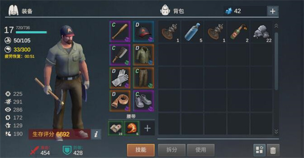 3、去击杀僵尸并且拿到足够多生存资源,热血激战升级战场上,各色武器装备收集;