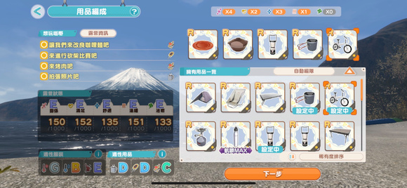 露营用具点开可以查看详情,我推荐均衡一点,偏料理。