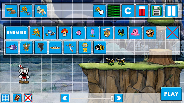 茶杯头制造手机版,它是由国外大神Mrskailo自制的一款可以自由DIY茶杯头关卡的游戏。这款游戏已经保留了茶杯头基本的手绘卡通风格和经典2D横版玩法,带有三个关卡可直接玩,更特别的是,在游戏中,所有障碍物到底如何设定都将由玩家自己决定,玩家可以自由制定关卡的类型以及难度,随意的制作摆放道具、怪物、障碍等角色,进行关卡编辑,标题页面CREAR为关卡制造,设置各种规则让你的茶杯头冒险关卡更加丰富!