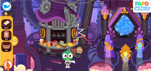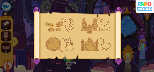 8、紧接着进行向右边移动场景,点击箭头所指示的物品,并在上方画出该图像获得奖励;