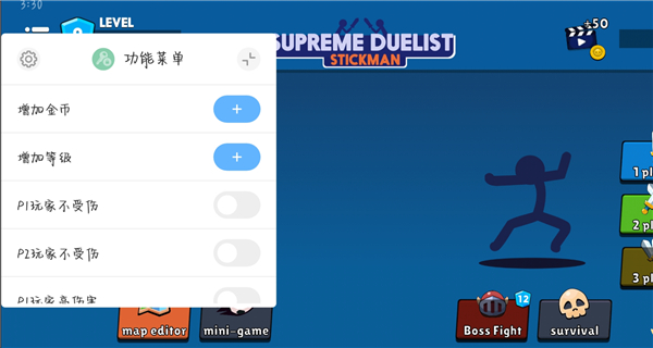 PS:本站提供的是火柴人至高对决内置作弊菜单最新版,此版本已内置作弊菜单,其中包含角色无敌、变大药水、爆炸绿药水、武器技能进阶等多项功能,可任大家随心选择开启!