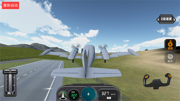 2、拖动左侧油门一直向上飞机则加速,操纵杆控制飞机的左右及升降情况。